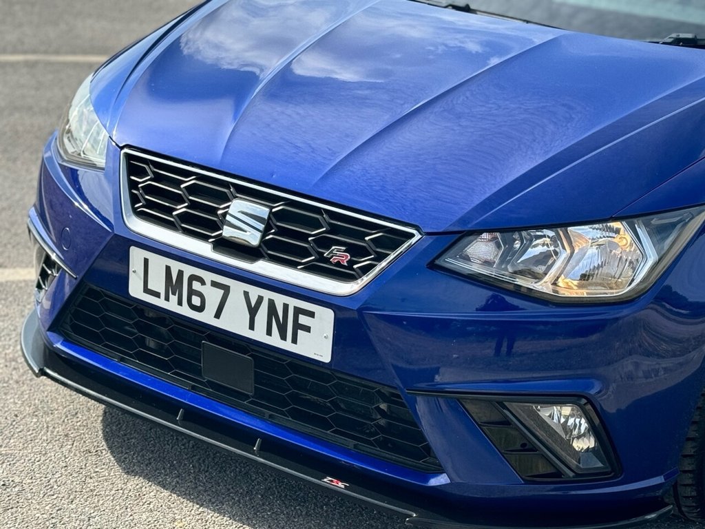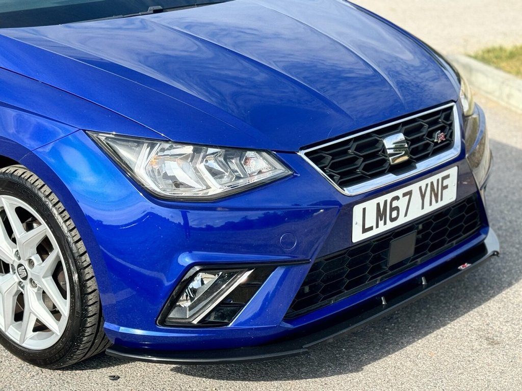 The Ibiza FR 2017 has a dynamic, athletic design that sets it apart from other cars in its class. The FR (Formula Racing) trim gives it a more aggressive look with sporty bumpers, 17-inch alloy wheels, and a twin exhaust at the rear. The sharp lines and angular headlights contribute to a modern, confident stance. Great Looking car in striking Blue, added Splitter on front giving it more presence on front end.