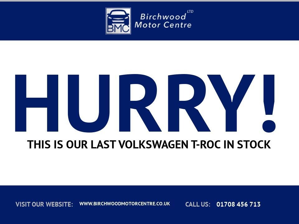 IF YOU FANCY A BIT MORE VIM AND VIGOUR – OR MAYBE YOU CARRY LOTS OF PASSENGERS AND LUGGAGE – IT'S WELL WORTH LOOKING AT THE 148-BHP 1.5 TSI 150. THIS IS NOTICEABLY QUICKER THAN THE 1.0-LITRE, CUTTING AROUND TWO SECONDS OFF ITS 0-62MPH TIME, WHILE PROVIDING MORE OVERTAKING OPPORTUNITIES WITH LESS STRESS AND FEWER GEAR CHANGES. ALSO, IT BRINGS THE OPTION OF A SEVEN-SPEED DUAL-CLUTCH AUTOMATIC GEARBOX. YOU CANNOT HAVE THAT WITH THE 1.0 TSI 110. THE CAR HAS HANDLED ANYTHING ASKED OF IT WITH EASE, FROM SHORT JOURNEYS ROUND TOWN TO LONGER TRIPS INVOLVING SEVERAL HOURS OF MOTORWAY DRIVING LOADED WITH KIDS, STUFF AND THE DOG. THE PREMIUM-FEEL INTERIOR, WITH UPDATED TECH AND USING SOFT TOUCH MATERIALS, HAS ALWAYS BEEN A PLEASING PLACE TO BE. THIS T-ROC COMES WITH A GREAT SPECIFICATION TOO INCLUDING APPLE CARPLAY AND ANDROID AUTO, FRONT AND REAR PARKING SENSORS WITH REVERSE CAMERAS, AUTOMATIC DUAL-ZONE AIR CONDITIONING, CRUISE CONTROL, VOICE CONTROL, AUTOMATIC DUSK SENSING HEADLIGHTS, BLUETOOTH CONNECTIVITY - 4X IMMACULATE 17" ALLOY WHEELS - BIRCHWOOD MOTOR CENTRE - ESTABLISHED 25 YEARS ...FULL DEALER FACILITIES...GREAT FINANCE HP AND PCP PACKAGES AVAILABLE SUBJECT TO STATUS-ALL CREDIT PROFILES CATERED FOR...3 TO 36 MONTH COMPREHENSIVE PARTS, ELECTRICS AND LABOUR WARRANTY'S AVAILABLE..ALL VEHICLES FULLY PDI CHECKED WITH A MINIMUM 6 MONTH M.O.T... HPI CHECKED WITH CERTIFICATE GIVEN.. UNIQUE ONSITE TEST DRIVE FACILITY...CALL 01708 456713 NOW TO BOOK A VIEWING OR A TEST DRIVE!